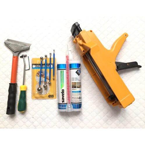 - Chổi sơn, hút bụi để vệ sinh mạch trước khi bơm keo