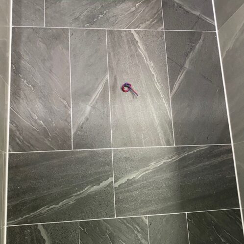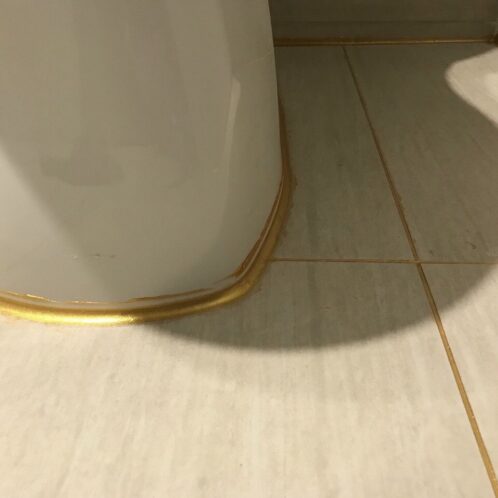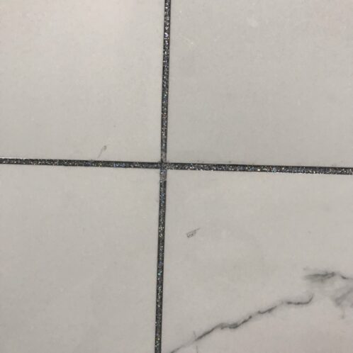 - Dùng cầu ron chuẩn bị sẵn chà vào mạch gạch sau khi chít keo và đây cũng là bước quan trọng nên bạn cần làm cẩn thận và tỉ mỉ một chút để đường ron được đẹp và đều.