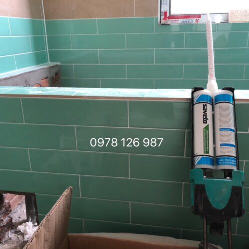 - Dùng 2 tay cầm súng, đi keo đều vào mạch gạch.