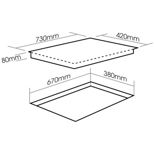 - Kích thước (dài x rộng x cao): 730 x 420 x 80 mm