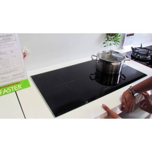 - Bàn phím điều khiển dạng trượt Slider Control, 9 mức công suất + Booster Hẹn giờ độc lập cho từng vùng nấu, thời gian hẹn đến 1 giờ 59 phút