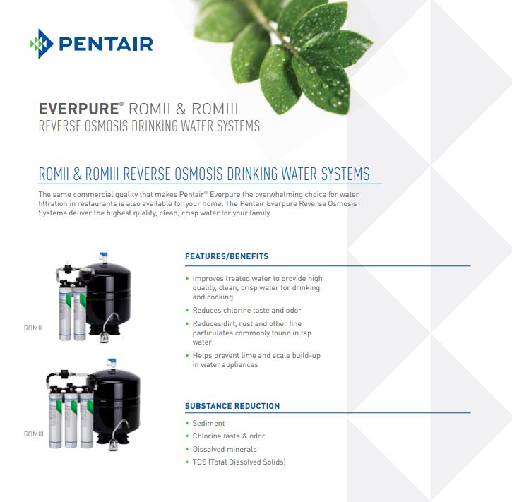 Hệ thống thẩm thấu ngược II kết hợp lọc thô khối carbon S-101 nhằm giảm mùi, vị chlorine và các chất ô nhiễm khác trong nước. Lõi lọc thẩm thấu ngược với màng composit siêu mỏng (TFC) của hệ thống ROM II loại bỏ các tạp chất có kích thức từ 0.00001 microns trở lên. giúp loại bỏ hiệu quả asen, chì, đồng, Natri, Nitrat, Florua, vi sinh vật và các chất cứng (TDS).